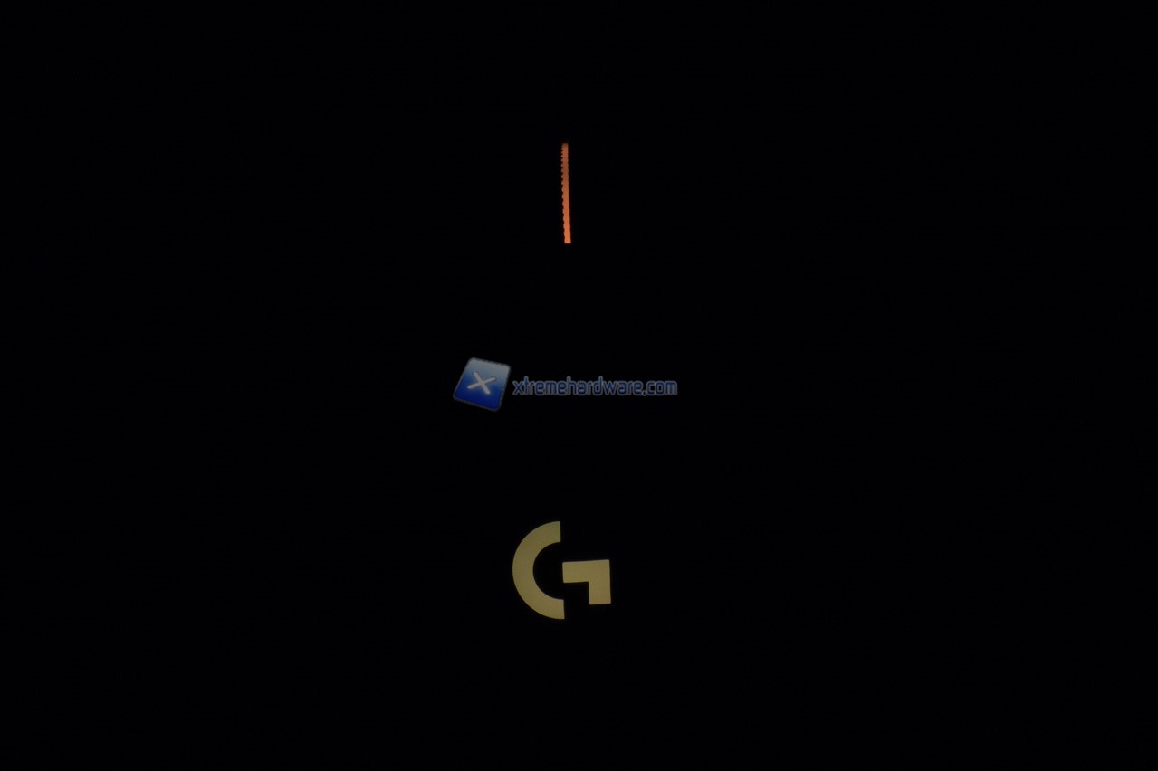 Partiamo dal dorso del mouse. Osserviamo la consueta gobba della serie G4xx di Logitech che rende l’impugnatura sul mouse comfortevole e naturale. Presente il logo della serie G che verrà retroilluminato del colore e con l’effetto che potremo scegliere tramite il software di gestione.