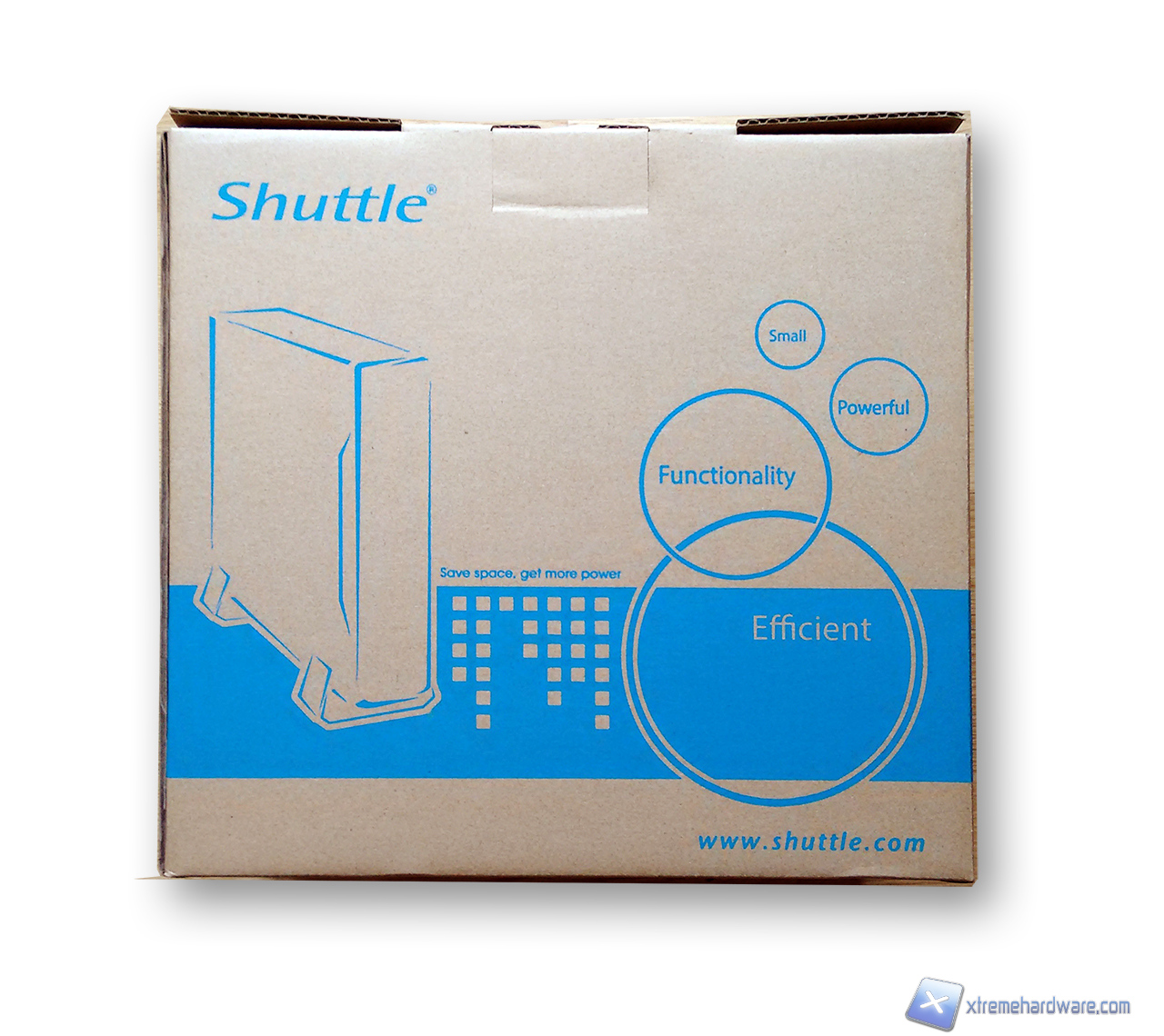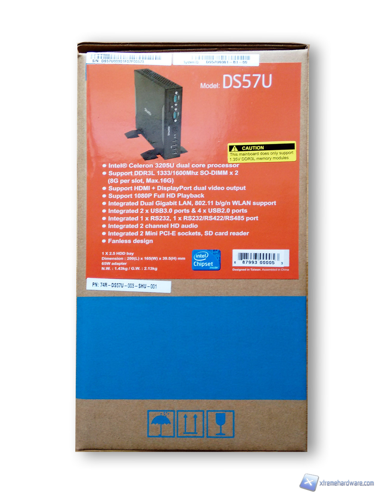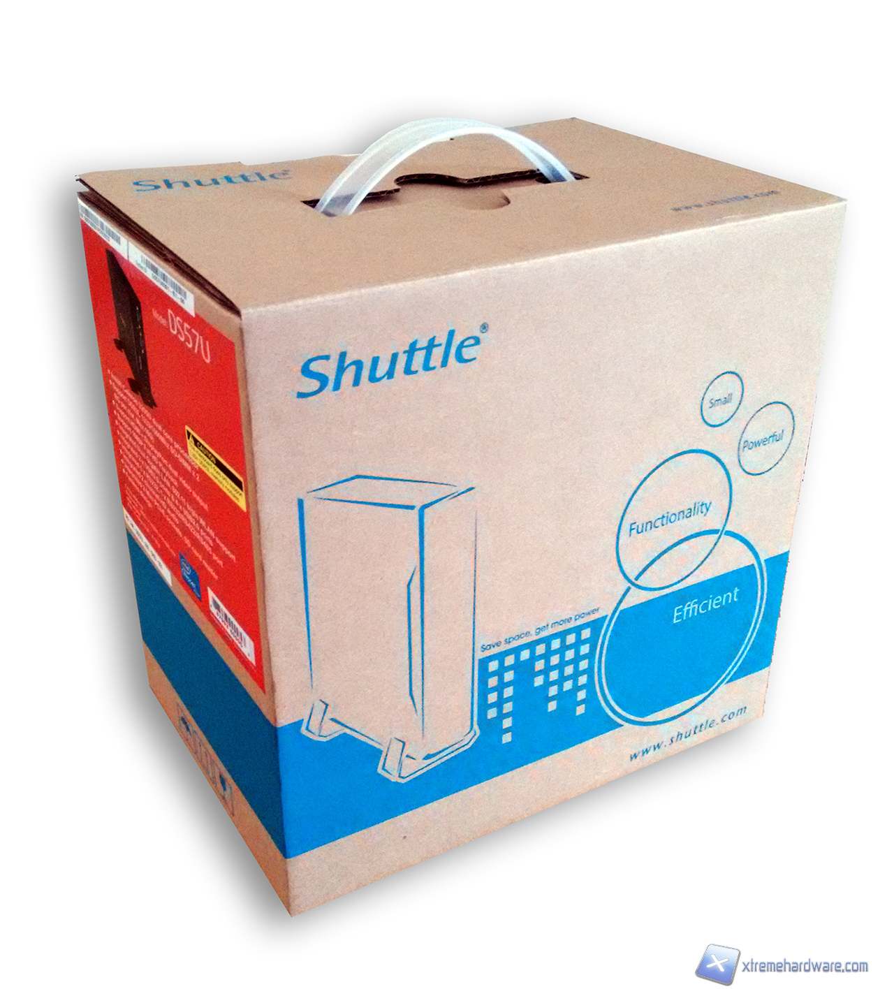 La confezione dello Shuttle DS57U è abbastanza discreta, sul lato troviamo un adesivo a colori raffigurante lo Shuttle DS57U e le relative specifiche tecniche.