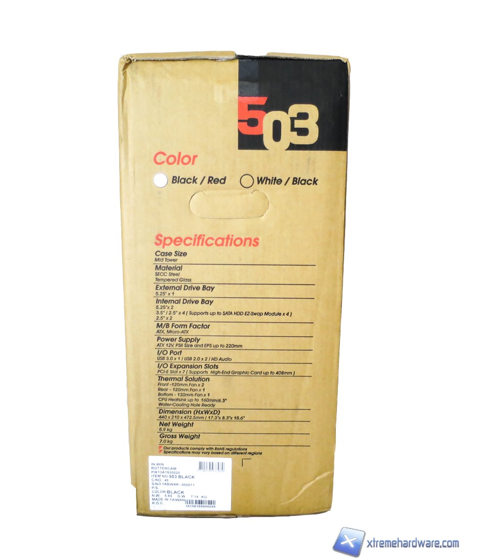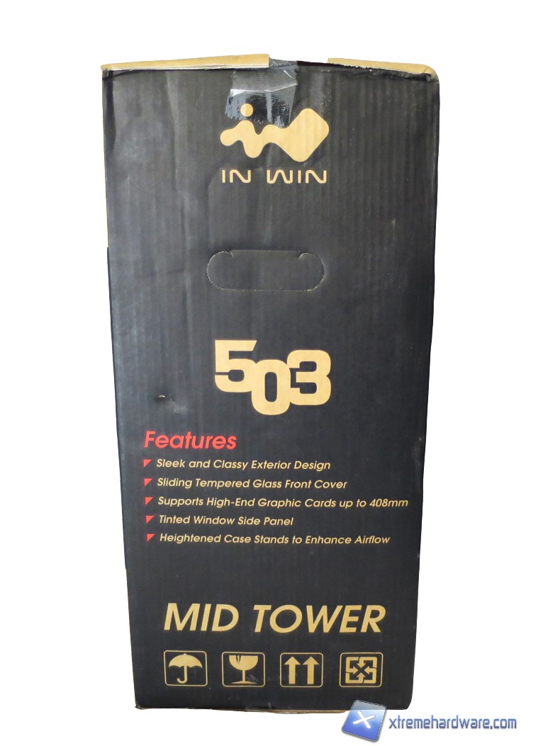 L’In Win 503 ci giunge in una classica confezione di cartone sulla quale sono riportate immagini, loghi, informazioni e caratteristiche.