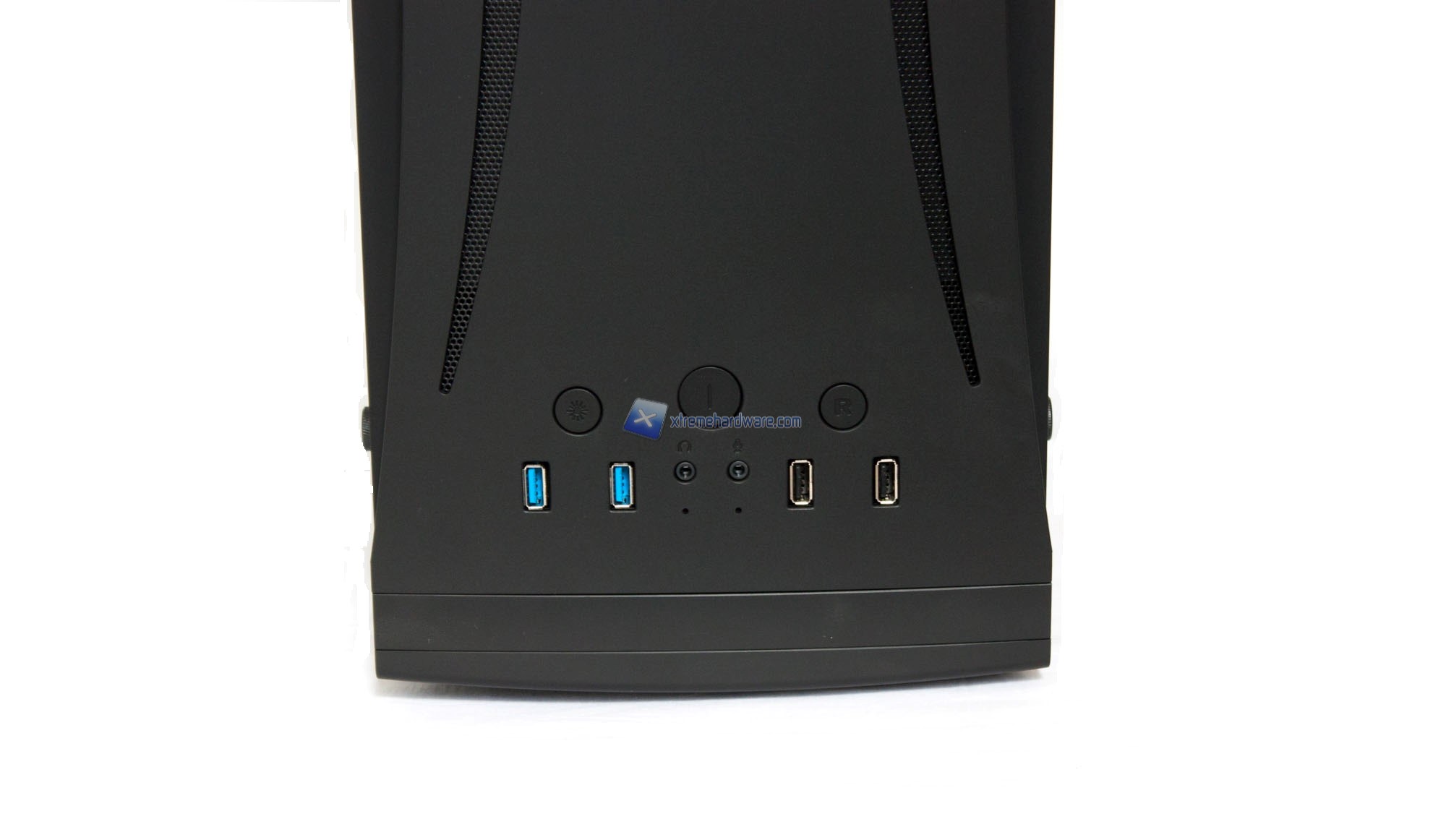 Partendo dal frontale osserviamo una struttura in plastica con un design abbastanza caratteristico (Curved) senza scomodare troppo il design complessivo. Dietro questa ‘’bombatura’’ troviamo una griglia che permetterà l’afflusso di aria all’interno del case.