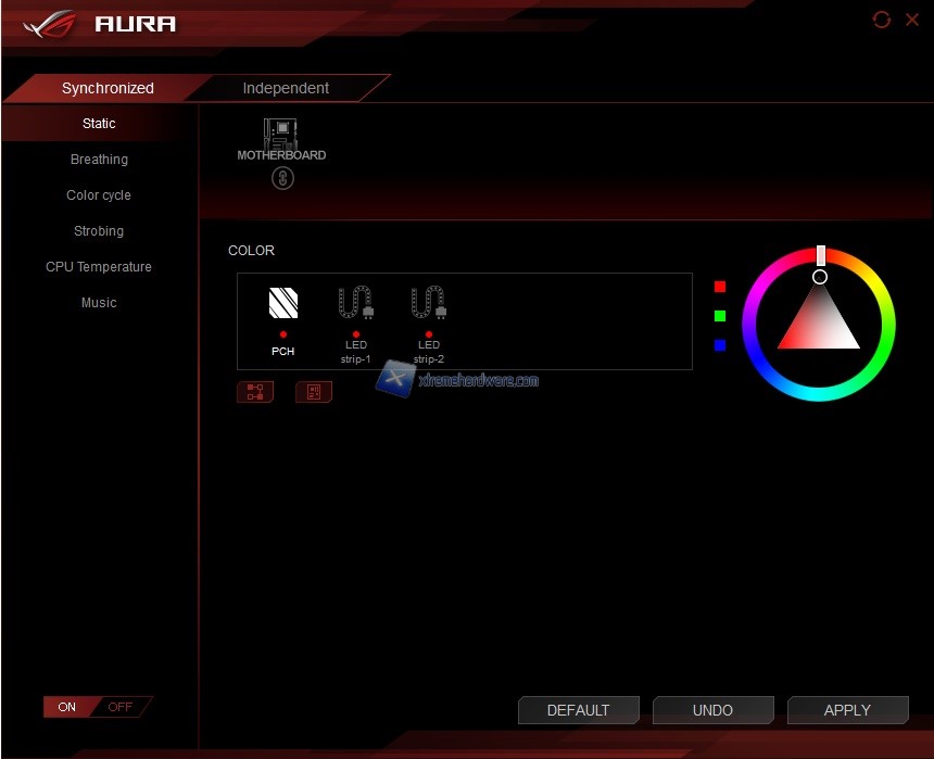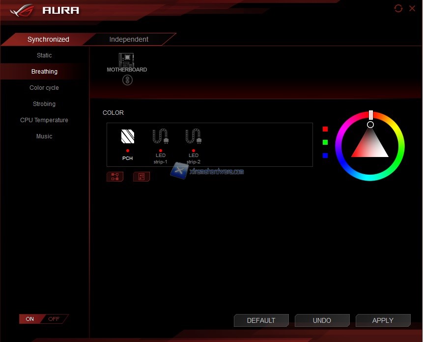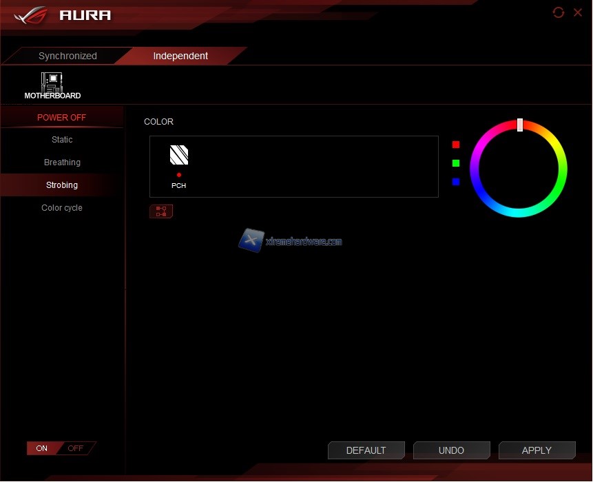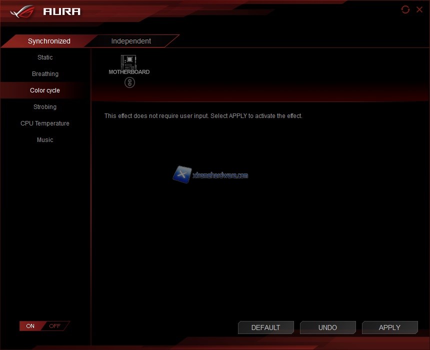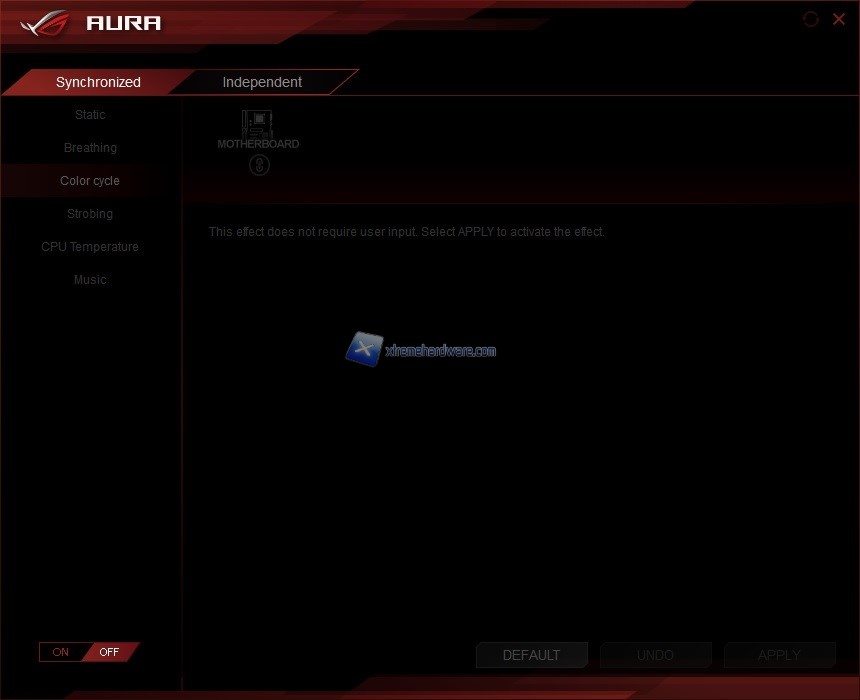 Avremo a disposizione due ‘’Menù’’ principali che sono ‘’Synchronized’’ e ‘’Independent’’. Potremo anche disattivare l’illuminazione con un semplice click.