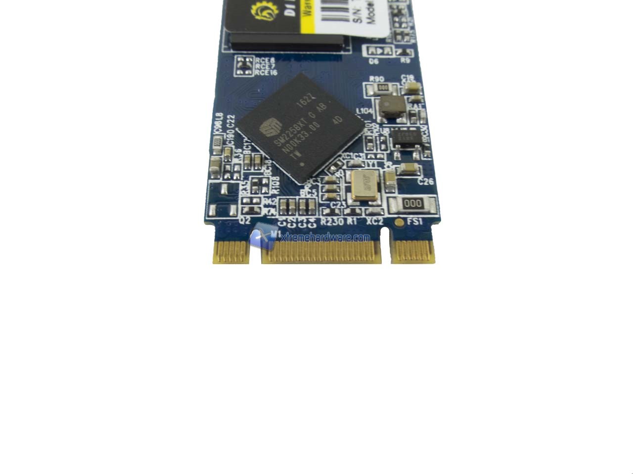 Nuovamente nel lato frontale troviamo in primis il controller, posto a lato delle memorie NAND Flash, SM2258XT prodotto da Silicon Motion. Controller Quad-Channel con tecnologia proprietaria NANDXtend atta alla correzione di eventuali errori e alla protezione dei dati in abbinamento a NAND TLC.