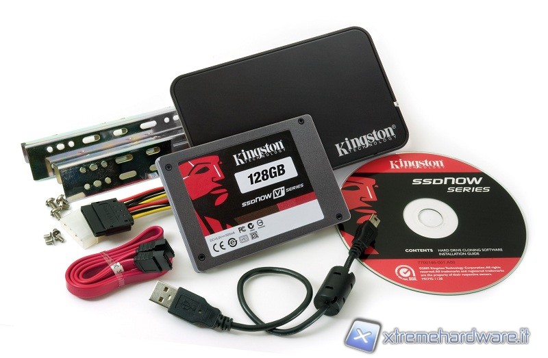 Il Kingston SSDNow V+ Series viene venduto con due differenti tipi di bundle. Il modello con codice SNVP325-S2B/128GB è quello giunto nella nostra redazione e prevede alcuni accessori, non presenti nel modello SNVP325-S2/128GB in cui troveremo solo il Drive.