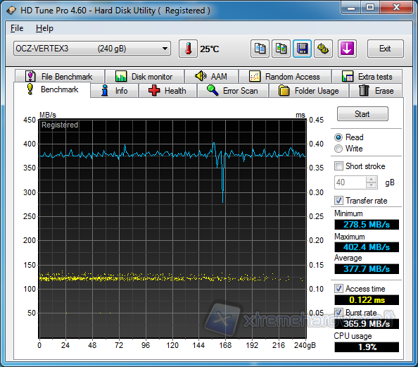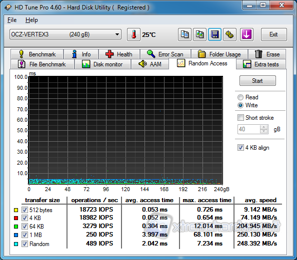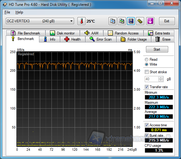 OCZ Vertex III 240GB, SSD con SandForce SF-2200 e Sata 6Gb/s - HD Tune 4.60